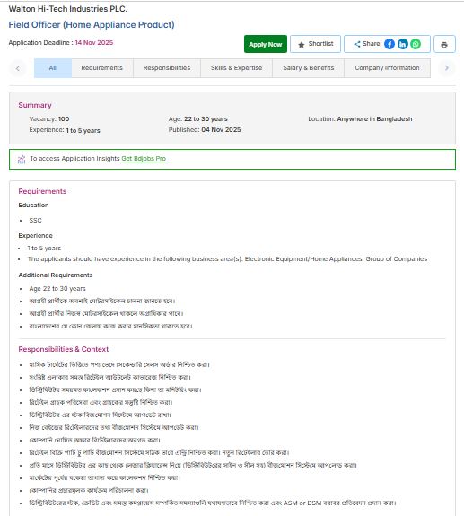 তাই যদি আপনি পরিশ্রমী, আত্মবিশ্বাসী এবং বিক্রয় পেশায় আগ্রহী হন, তাহলে walton job circular 2025 আপনার ক্যারিয়ারের জন্য পারফেক্ট পদক্ষেপ।