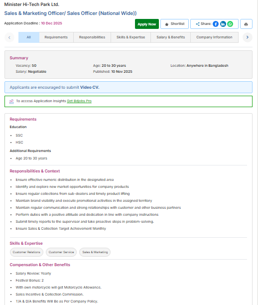 এটি শুধু একটি চাকরি নয়, বরং এটি একটি সুযোগ আপনার ক্যারিয়ার শুরু করার জন্য, যেখানে আপনি শুধুমাত্র এসএসসি পাশই হয়ে থাকতে হবে। আপনার বয়স হতে হবে ২০ থেকে ৩০ বছর, এবং কাজের জায়গা হবে যেকোনো জায়গা থেকে বাংলাদেশে।
